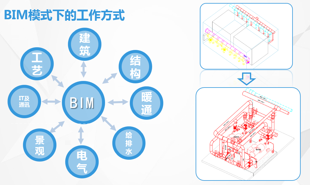能源站的设计特性需要各设备厂家提供详细的BIM模型,仅通过协同模型的图源替换可完成部分专业的自动设计修改。