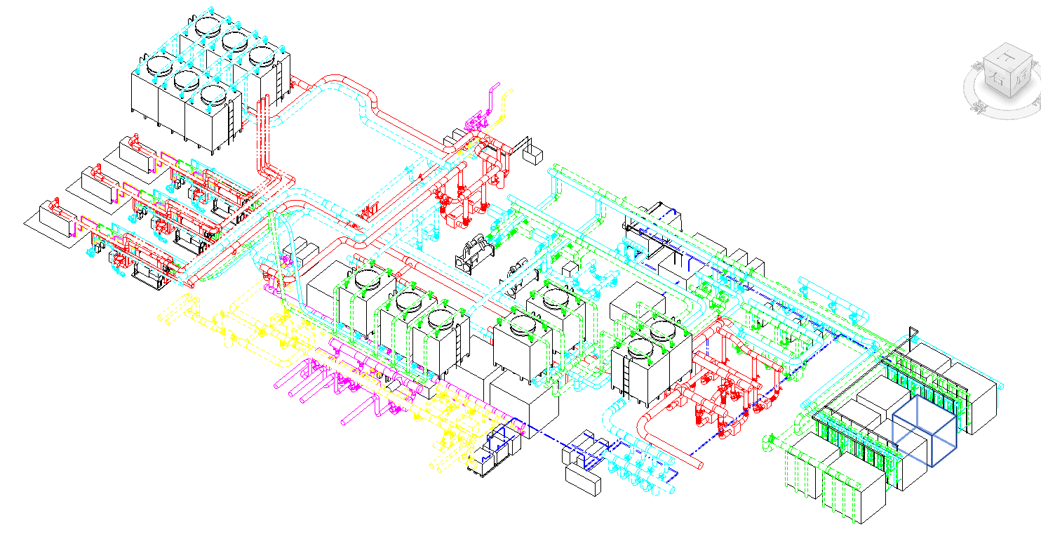 采用BIM设计保证了本项目大量1m以上管径的超大管道的地下空间布置设计流程顺利进行,应用BIM模型提取数据进行管道应力计算以及水力计算。