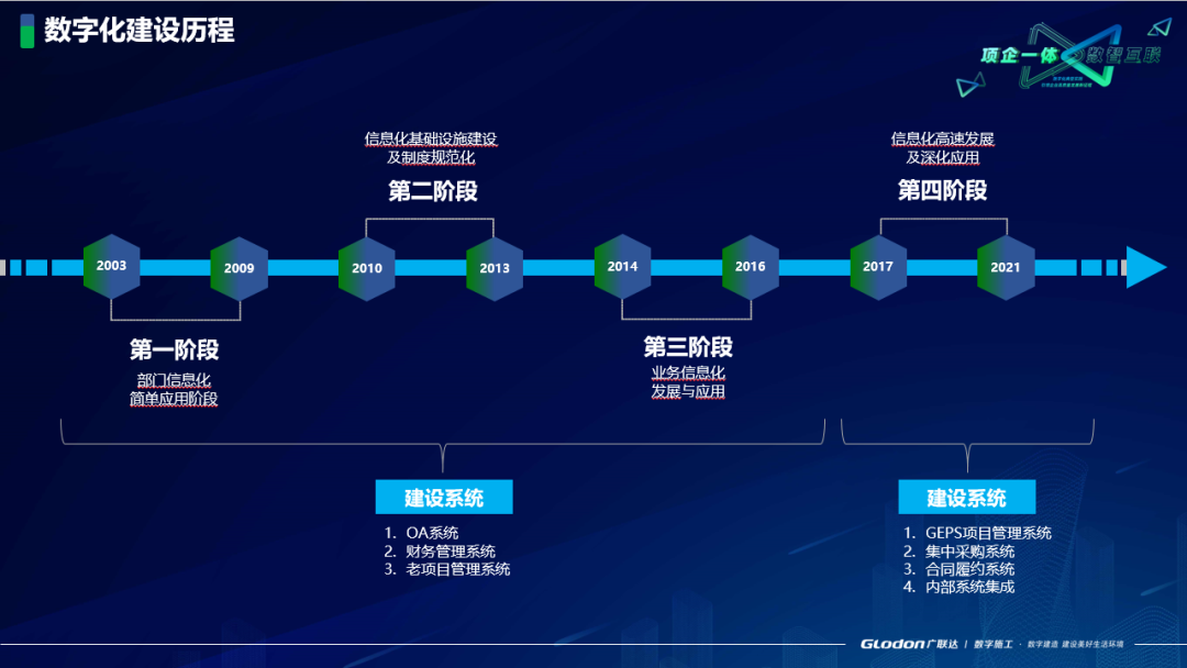 (1)没有统一规划,信息化发展的水平比较低。比如,手工做预算十分辛苦,就上一个算量软件,这是业务部门的业务驱动型的信息化。