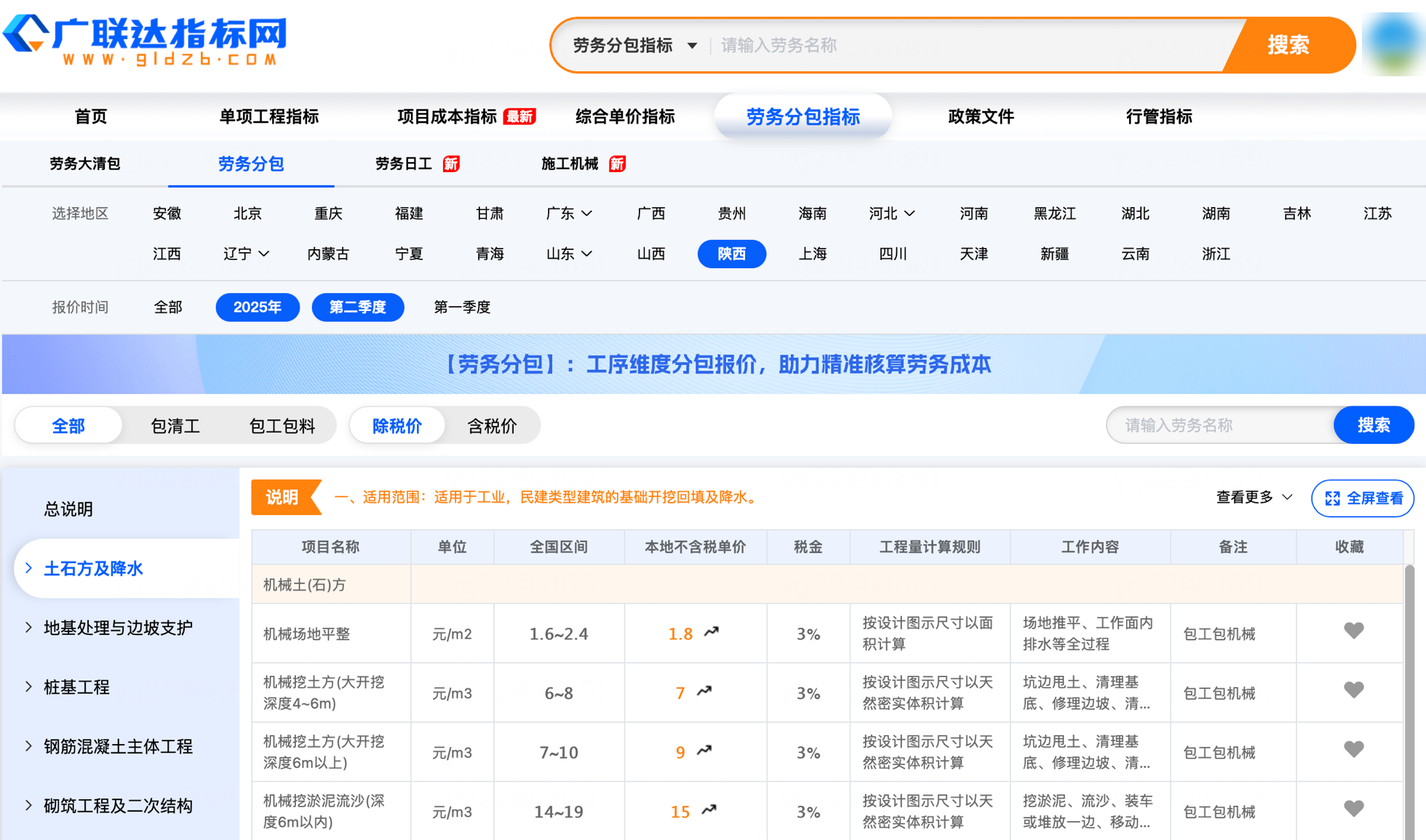 劳务分包指标提供全国行业劳务分包报价数据,分别有劳务分包、劳务大清包、劳务日工、施工机械价格,成本测算、分包定价有据可依;科目内容明细包含:本地指导价、全国价格区间、详细工作内容等。