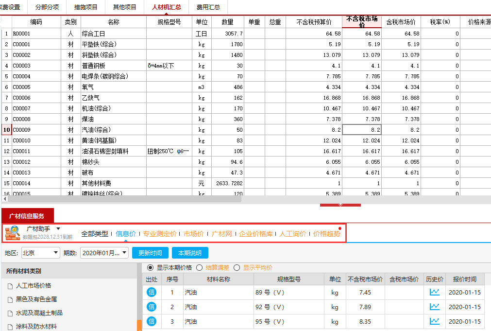 广材助手提供全国各省市、及下属地级市、县等,完善的信息价、市场价、专业测定价 ;在人材机汇总界面属性窗口中,可直接查看所需材料的价格。