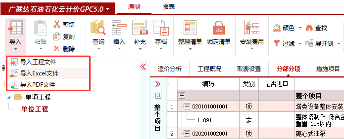 导入工程文件,支持项目工程导入到项目工程,项目工程导入到单位工程,单位工程导入到单位工程,各个维度的工程可以互导,充分协同工作