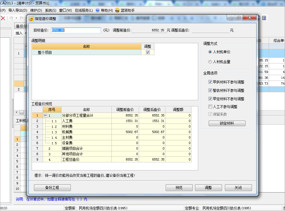 用户在投标前根据需要快速将项目的工程造价调整到目标造价,提高中标率
