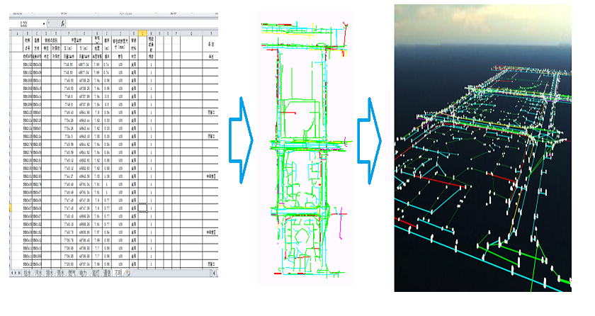 可以将Excel、ARCGIS格式的现状管网数据或图面二维现状管线图形自动转换为管道三维模型,经过识别的现状管网可以参与给水管道的竖向设计,并三维展示。