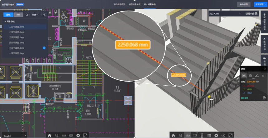 二三维人工辅助审查图模轻量化浏览 测量、旋转、剖切、小地图定位、轴网定位、漫游 多专业集成参照、模型批注、问题关联模型定位、变更对比 BIM正向设计图模构件级联动和BIM逆向设计图模空间级联动 |