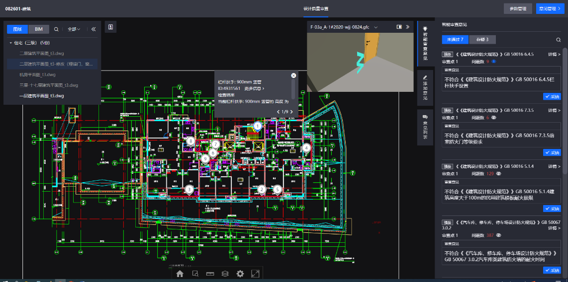 设计质量智能审查•房建类全专业1000多条国标规范条文的智能审查 •自定义规则编辑器,各专业人员可自定义修改条文规则 •智能审查意见同时匹配至图纸和模型,审查人员可以清晰查看图模问题 |