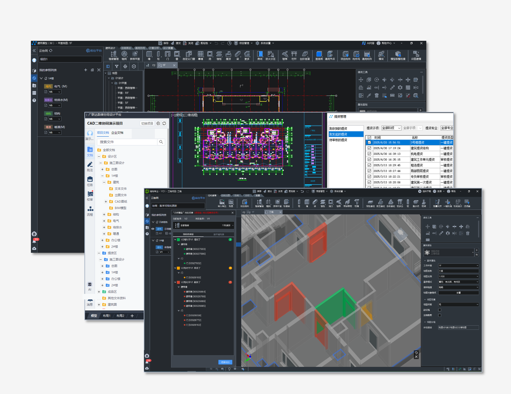 二三维协同设计,项目协作效率翻倍• 设计内容实时上云,历史版本100%可追溯 • 构件级提返资,实时、精准、高效 • 设计修改自动通知,增删改清单自动生成 • 三二维无缝衔接,跨工具轻松应对