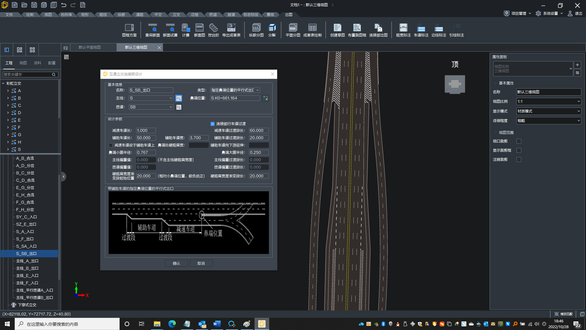 路线设计路线设计包括导入路线和设计路线两种方式,其中导入路线支持纬地、EICAD/DICAD、鸿业路线文件的导入;主线线形设计支持快速自动布线、线形控制试算、S/C联合设计、快速跳转编辑,立交线形设计支持万能接线,自动判断所选线元进入对应设计界面。智能判断线形要素类型及位置,匹配最佳线形,立交变速车道设计自动判断出入口类型、方向,直接、平行式一键切换 |