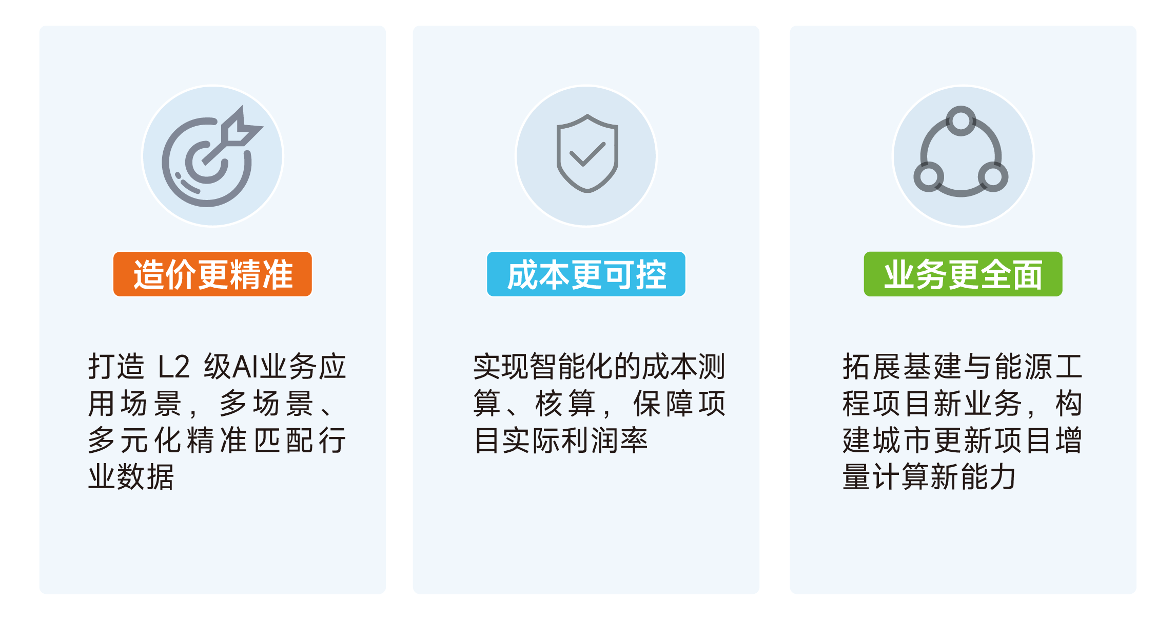 raybet雷竞技以AI技术为核心,结合海量行业数据,构建起智能化的造价成本管理体系,实现从“经验驱动”到“数据驱动”的跃迁式升级。三个方向升级服务能力,一方面把更多行业数据碎片化加持到造价工具的场景中,让造价作业的更多小场景变得智能精准,另一方面提供轻量化成本作业工具,改善繁重管理系统在精细化成本管理中的落地问题,同时在拓展房建领域的城市更新以外,对水利水电、石油石化、电力、公路、民航、光伏、地铁、冶金、水工、通信等多行业项目的造价业务提升服务能力