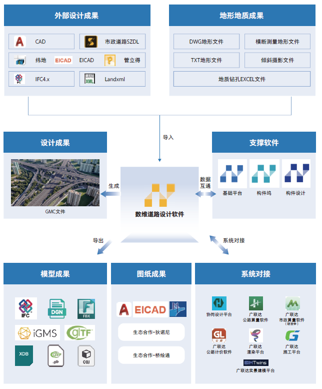 通过一个解决方案摆脱多家公司、多种平台的设计业务困境,解决当前道路设计生产和未来国产化BIM一体化难题。